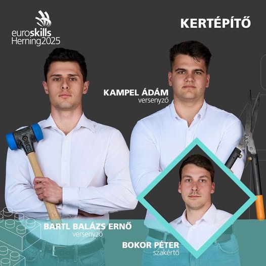 Magyarország történetének legsikeresebb EuroSkills versenyén az agrárszakmák is csodálatosan szerepeltek. Kertépítő szakmában Bartl Balázs Ernő és Kampel Ádám mutattam meg szakmai tudását. A feladat összetettsége mutatja, hogy egy előre meghatározott tervdokumentáció alapján kellett egy kert részletet megépíteniük, ahol szükségük volt többek között tereprendezési, burkolói, asztalosi, vízarchitektúrás, növényismeretei szaktudásukra. Kimagasló szakmai tudásukkal 32 ország versenyzői közül bronzérmet szereztek!