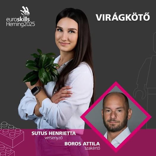 A Virágkötő versenyszámban Sutus Henrietta alkotott szebbnél szebb virágkötészeti kompozíciókat, ahol a hétköznapi és egyedi virágdíszek tervezését és kivitelezését kellett szakmai szempontok alapján megoldania. A versenyzők feladata, egy előre kiírt versenyszám teljesítése a tőlük elvárható legnagyobb kreativitással, gyorsasággal és precizitással. A versenyen minimum 4 kategóriában kell teljesíteni. Heni kiváló helytállással versenyzett társaikkal, ez pedig újabb bronzérmet hozott a virágkötő szakmában!