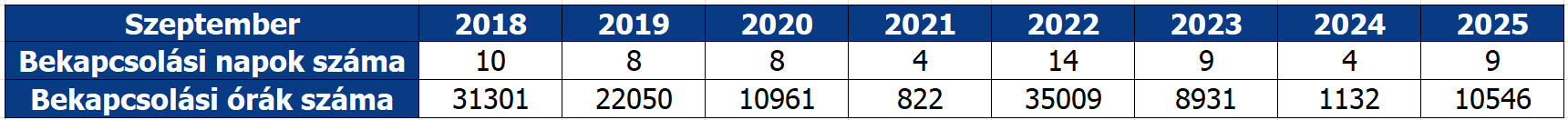 Az Országos Jégkármérséklő Rendszer talajgenerátorainak bekapcsolására szeptemberben 9 napon volt szükség.