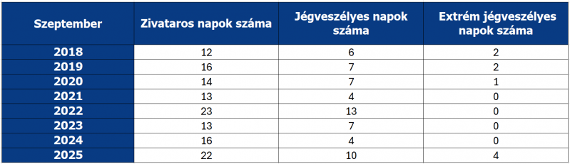 Idén szeptemberben 22 napon alakultak ki zivatarok, ebből 10 napon alakult ki olyan zivatarfelhő, amelyből előfordulhat jégeső és csak 4 olyan nap volt, amikor a jégveszélyes zivatarfelhők olyan hőmérsékleti határt értek el, amelyből nagy méretű jégszemek hullhatnak.