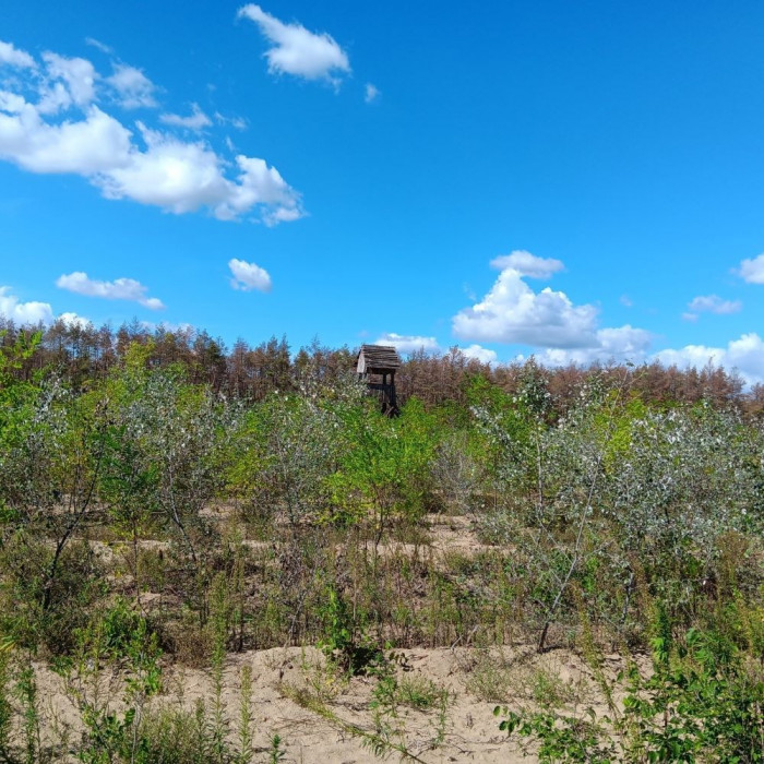 - 1. homoktalajon ültetett szürke nyár és akácos, háttérben száradó erdeifenyő állomány